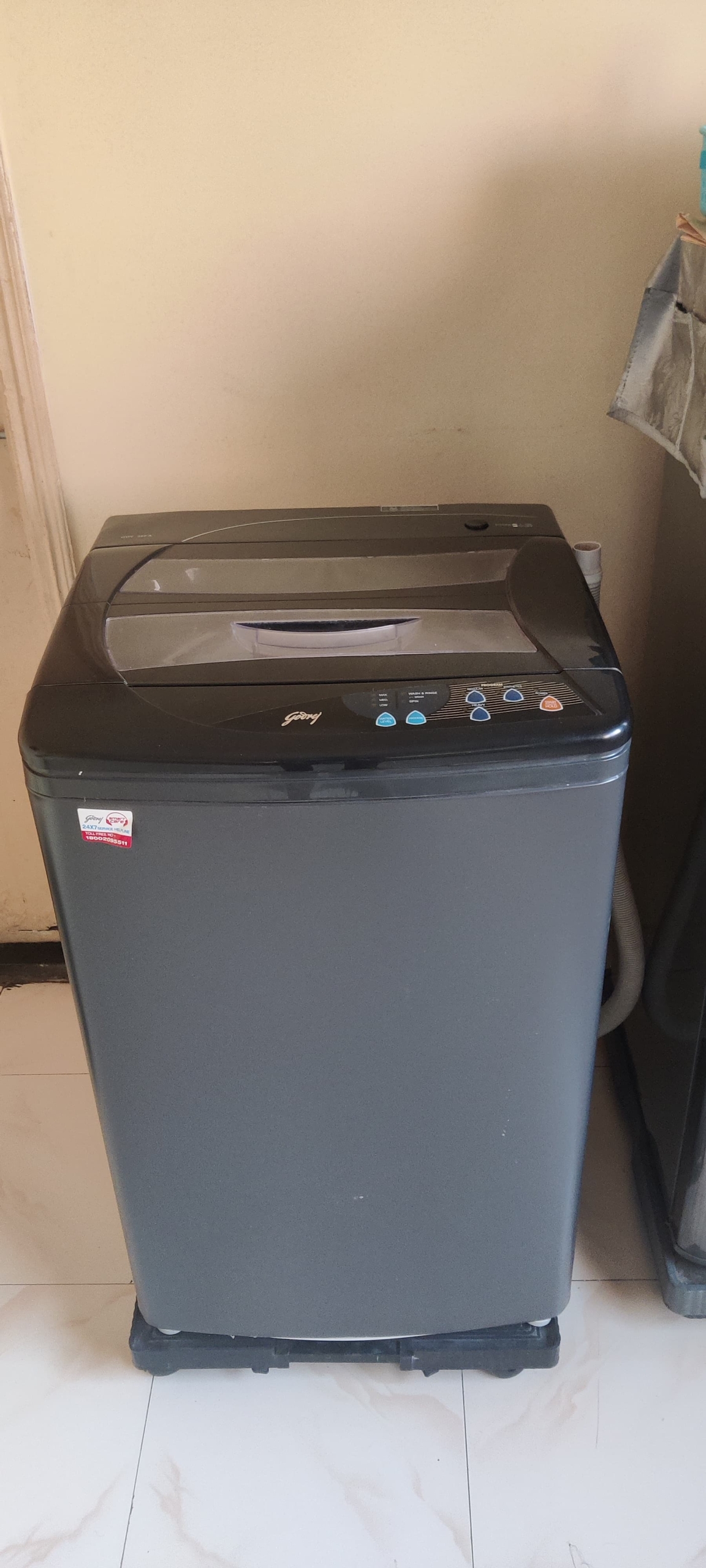 - Appliances: The flat is equipped with essential appliances, including a washing machine and a refrigerator, located in a dedicated utility area.